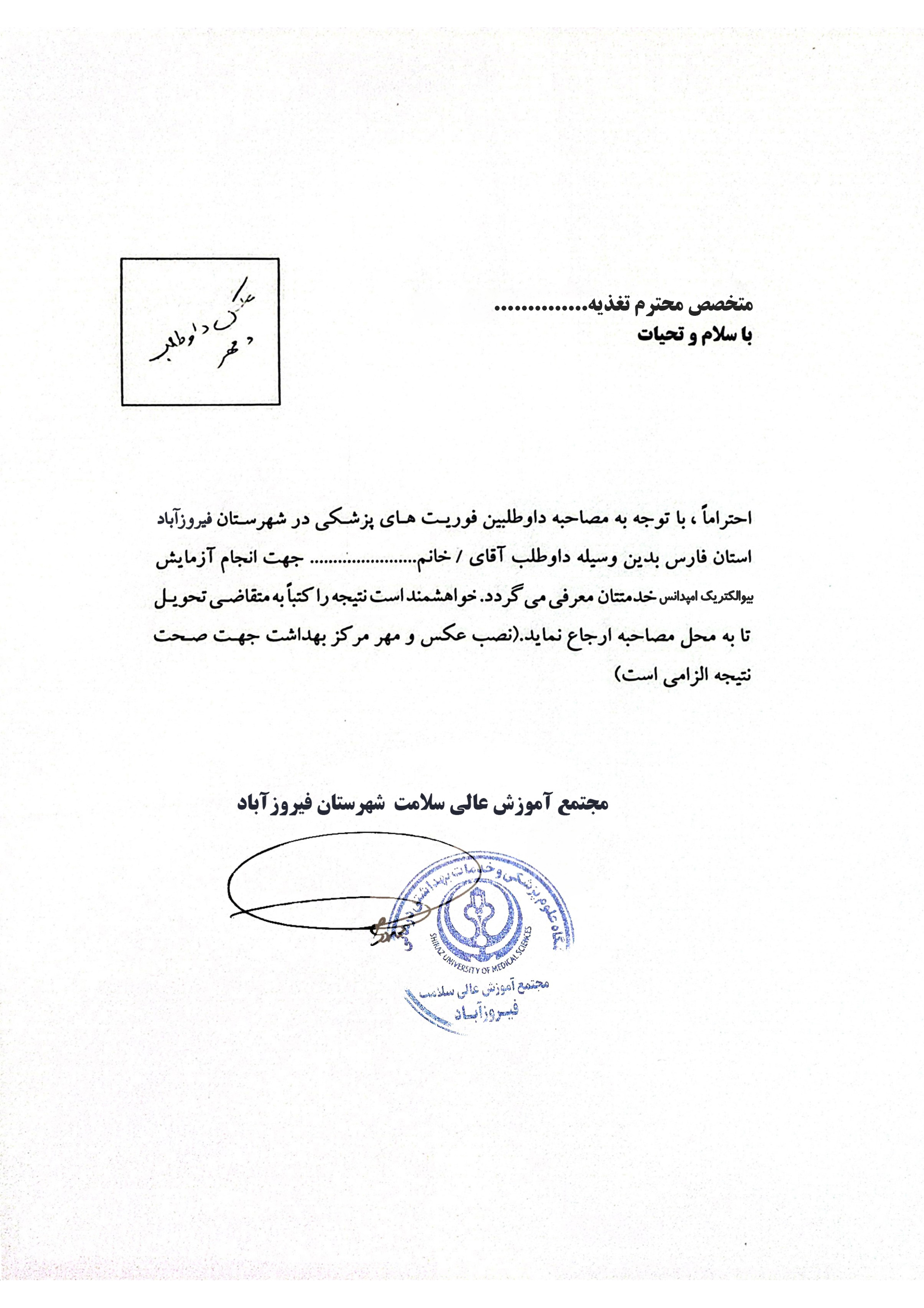 قابل توجه داوطلبانی که در مصاحبه فوریت های پزشکی bmi ۲۵ و بالاتر داشته اند لطفا تست بیوالکتریک امپدانس BIA (bioelectrical impedance analysis) را انجام داده به تایید شبکه بهداشت محل سکونت رسیده وحداکثر تا روز چهارشنبه ۹مهرماه به ادرس ایمیل دانشکده ارسال کنید.لازم به ذکر استbmi۲۵ وبالاتر بدون تست بیوالکتریک امپدانس منجر به حذف داوطلب از فرایند مصاحبه می گردد.